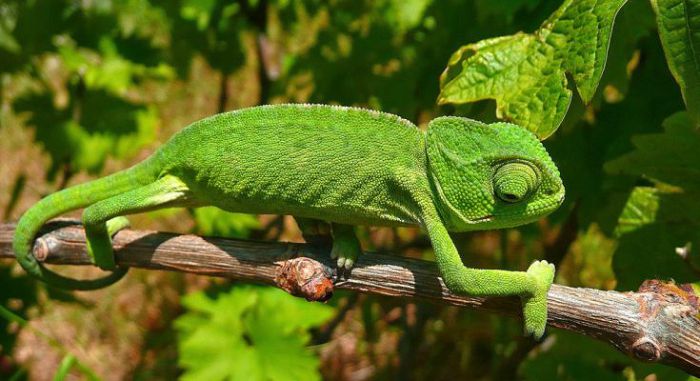 Хамелеоны мастера маскировки, их окрас, поведение все в них создано для поимки добычи в засаде. Длинный липкий язык с огромной скоростью настигает жертву. А голодный взгляд улавливает любое движение ничего не подозревающего насекомого.